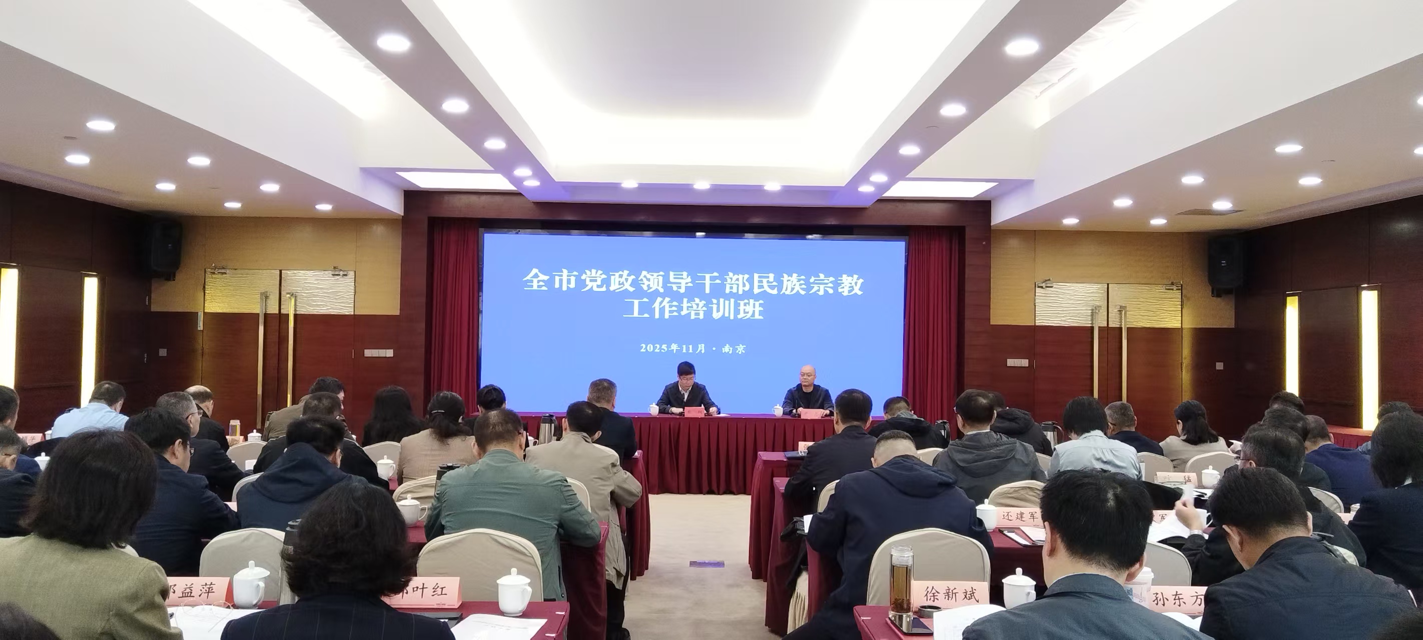11月10日至11日,全市党政领导干部民族宗教工作培训班在江苏省会议中心举办。南京市委统战部副部长、市民宗局局长张纲作开班动员讲话。市委统一战线工作领导小组相关成员单位分管领导,各区委统战部部长、各区政府分管民族宗教工作副区长、各区委统战部分管民族宗教工作的副部长(区民宗局局长),江北新区党工委宣传和统战部部长、统战办主任,市属高校统战部部长约70余人参加培训。
